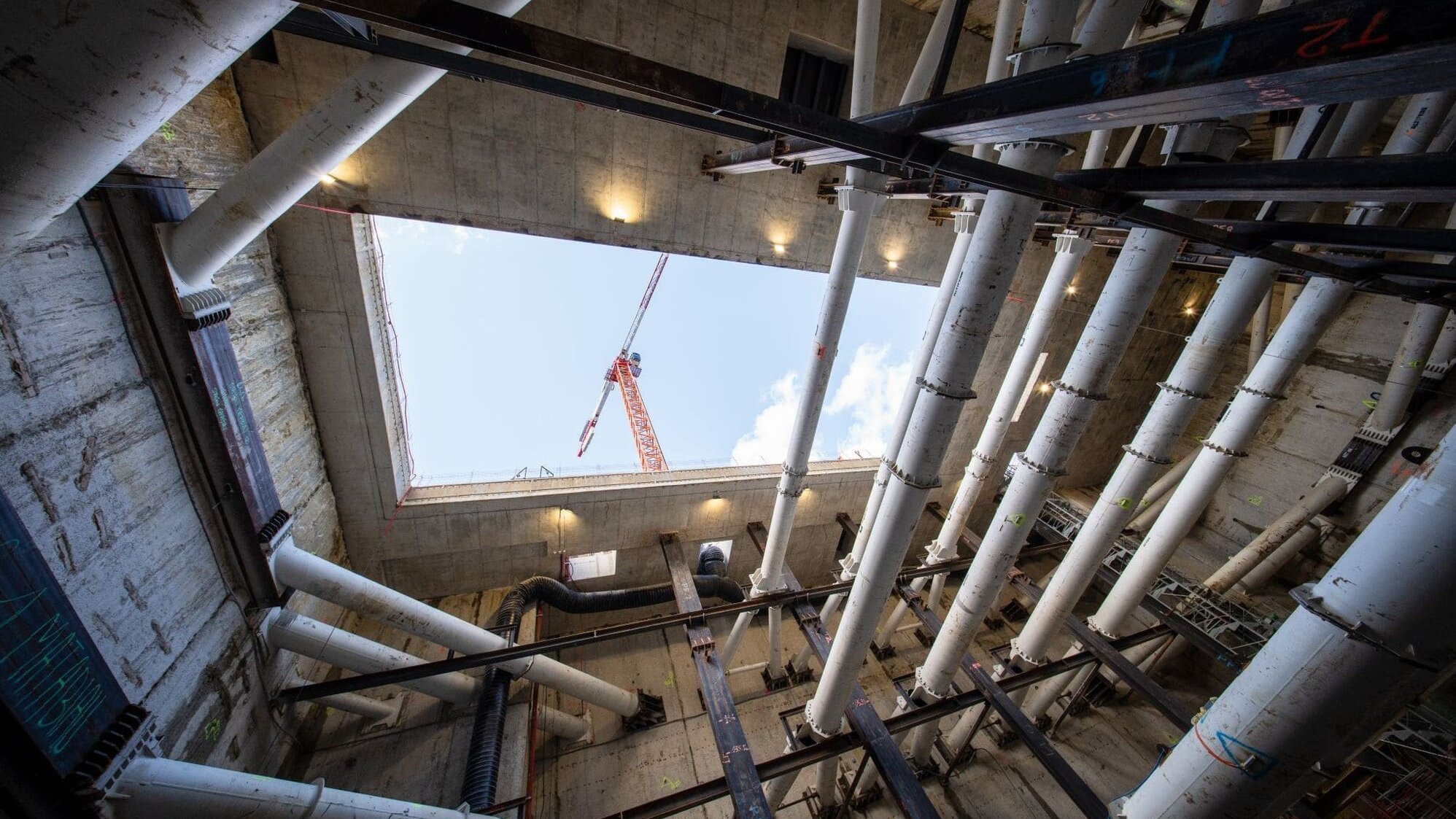 - la costruzione di quattro stazioni sotterranee a una profondità compresa tra 24 e 39 metri,