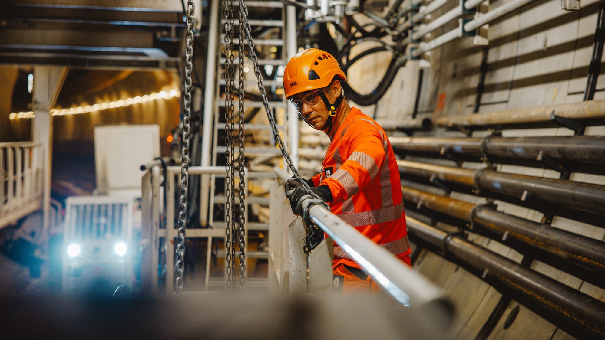 - la costruzione di un tunnel lungo 3814 metri con un diametro di 9,6 metri,