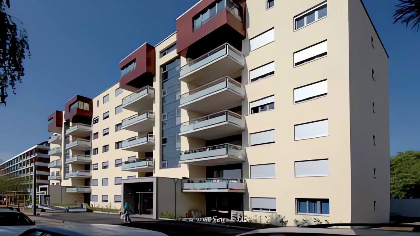 Lo spazio abitativo si estende all'esterno attraverso ampi balconi loggiati di 13 m2 per appartamento ai piani tipo o attraverso piccoli giardini al piano terra. Negli attici, le terrazze sono disposte lungo le facciate sud, ovest e nord. La disposizione sistematica degli ambienti, che si ripete a ogni livello, consente un'organizzazione semplice ed economica dell'edificio, che si estende su cinque piani, piano terra e sottotetto, oltre a un piano interrato con un parcheggio sotterraneo da 56 posti auto. L'edificio è costruito su una base classica - soletta, strutture verticali e solai in cemento armato - e coperto da un tetto piano non accessibile, isolato in due strati e sigillato con opere di lattoneria in acciaio inox. Le facciate principali presentano un isolamento perimetrale e una facciata intonacata.