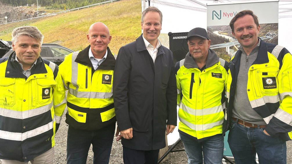 Samferdselsminister Jon-Ivar Nygaard deltok i markeringen sammen med blant andre Nye Veiers administrerende direktør Anette Aanesland, prosjektsjef Anita Enebakk fra Nye Veier og Erik Eiane fra oss i Implenia Norge.