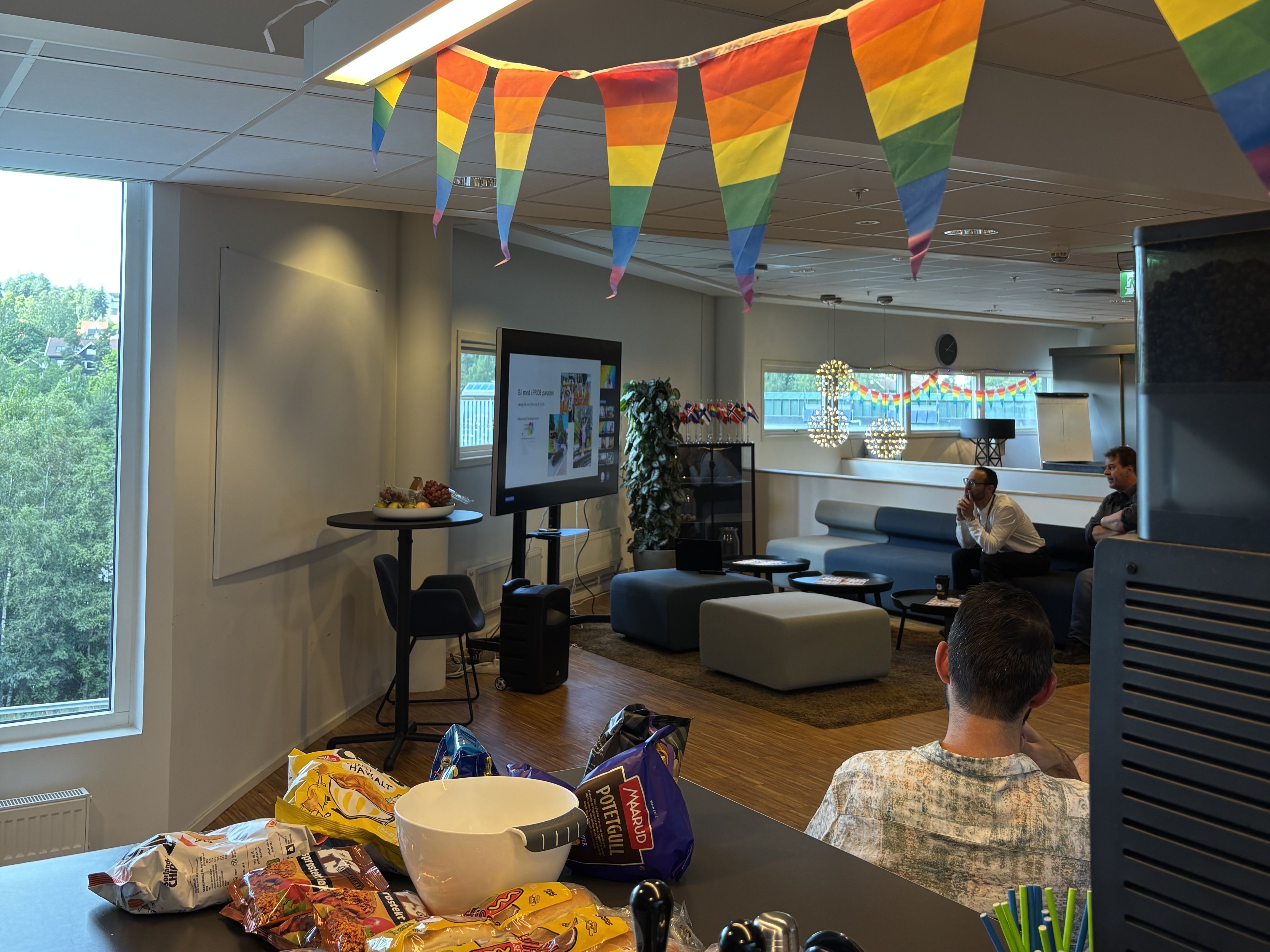 Im Anschluss an das Webinar wurde die Feier mit einem farbenfrohen Afterwork zum Thema Pride fortgesetzt, das von guter Stimmung, tollen Gesprächen und einem starken Gefühl des gemeinsamen Engagements für einen integrativeren Arbeitsplatz geprägt war. Einige Kollegen setzten die Feierlichkeiten auch in der Innenstadt fort und nahmen an der Eröffnung des Pride Parks am Kontraskjæret teil.