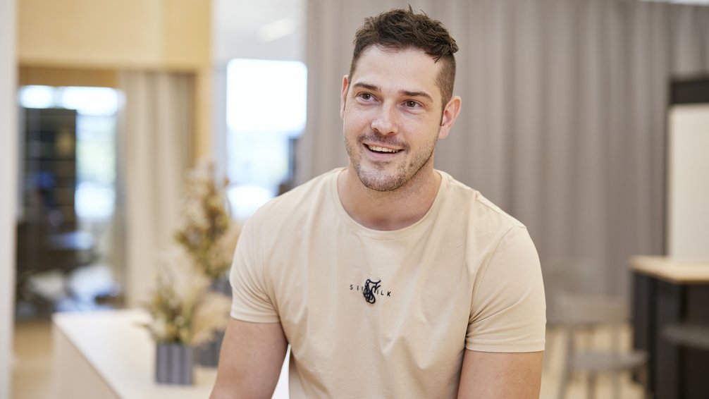 Im Jahr 2010 schloss ich meine Berufslehre als Zimmermann mit EFZ ab. Implenia bot mir eine Festanstellung im Holzbau an und von da an arbeitete ich als Zimmermann. So wäre beruflich eigentlich alles glatt gelaufen, hätte mein Kompartment-Syndrom und eine chronische Knochenhautentzündung an den Unterschenkeln nicht laufend Unterbrüche bei der Arbeit verursacht. Begonnen hatten die Anzeichen, als ich 19 war. Auch nach grösseren Pausen, monatelanger Physiotherapie und einer Operation kamen die Schmerzen nach jeder Belastung sofort wieder. Als ich 25 war, legten mir meine Ärzte ans Herz, die Tätigkeiten auf dem Bau zu verlassen, um über die nächsten Jahre noch eine Chance auf Genesung zu haben. So schwer ich das akzeptieren konnte: Ich wusste mich auf einen anderen Job einstellen.