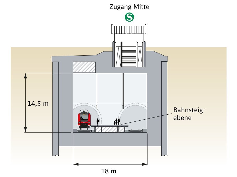 - Den maschinellen Vortrieb von zwei Tunnelröhren à ca. 1,2 km