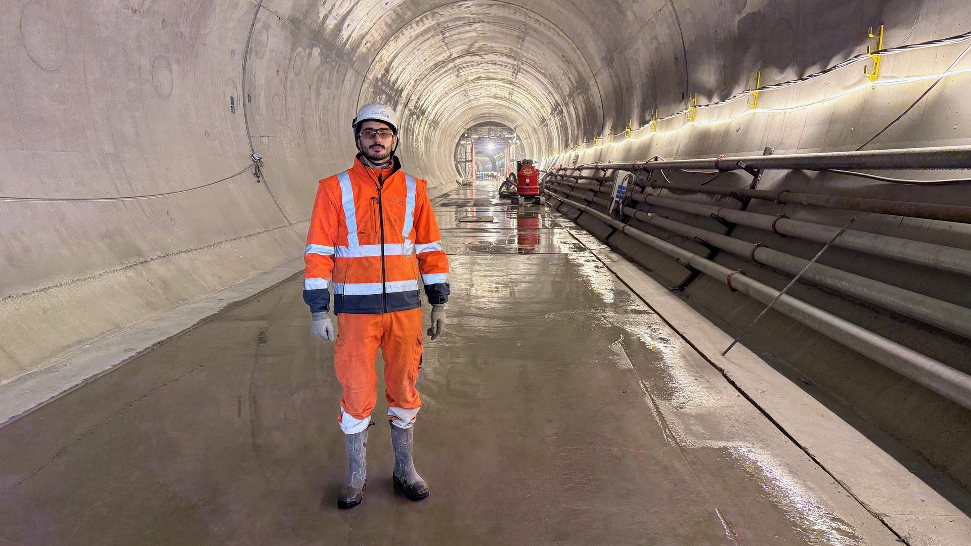 Er betreut ein Team von drei Personen mit unterschiedlichen Arbeitsorganisationen: Einige arbeiten im Schichtbetrieb mit nächtlichen Bereitschaftsdiensten, während andere unter der Woche von Montag bis Freitag im Einsatz sind. Für ihn ist die Welt des Tunnelbaus auch ein Ort der Begegnungen, da sich alle Gewerke zwangsläufig kreuzen selbst dann, wenn sie unterschiedlichen Unternehmen angehören.