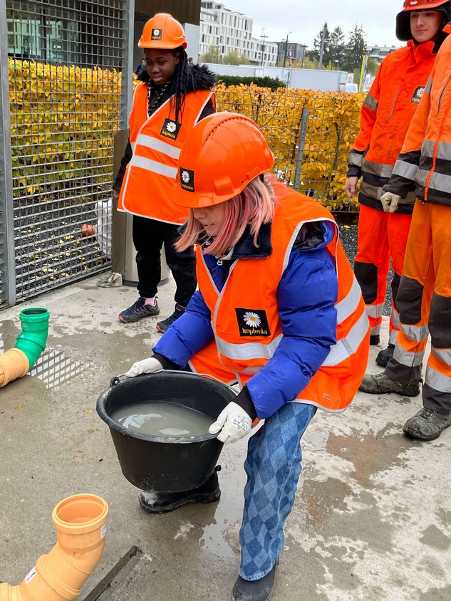 På ettermiddagen på fremtidsdagen arrangerte Implenia to allment tilgjengelige programmer som en del av den nasjonale fremtidsdagen. Under mottoet "Girls-build-less!" fikk tolv skolejenter fra 5. til 7. trinn prøve seg på å bygge en mur og legge vannrør på plassen foran Implenias hovedkontor - under kyndig veiledning av Implenia-lærlinger under ledelse av Adrian Geissmann. "Det er flott å se hvor gøy manuelt arbeid kan være", forklarer yrkesfaglæreren. "På slutten er det en vegg, og vannet renner gjennom rør - da ser man hva man har fått til!"