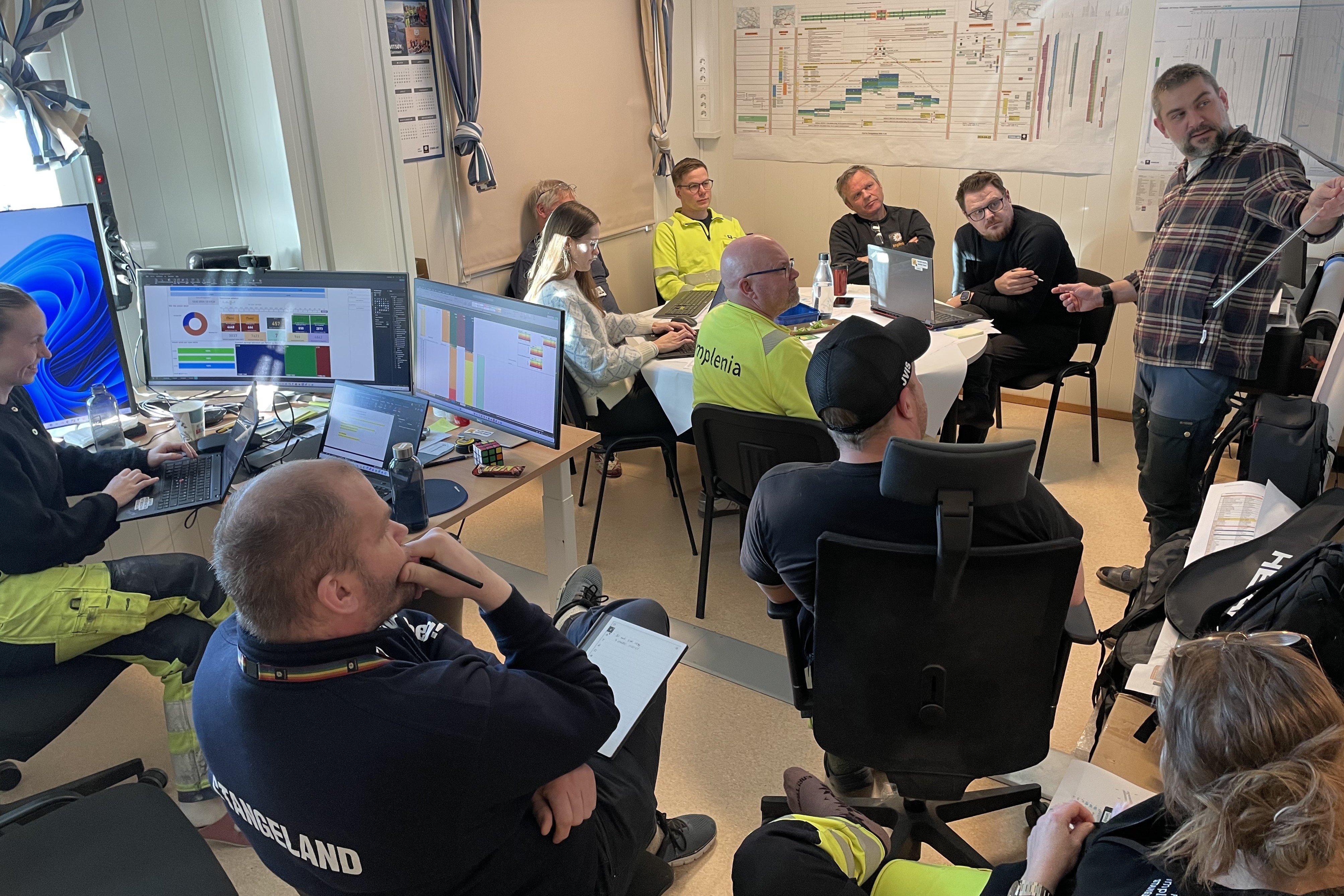 Arbeidet som pågår nå stiller store krav til koordinering. Flere fag jobber side om side i samme område, samtidig som sjaktdrivingen fortsetter. Grunnarbeid, vann og frost, betong, rigg, luft og strøm må samordnes i den daglige produksjonen.