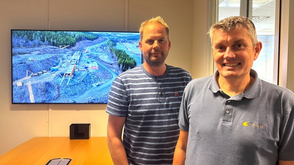 - Vi er spesielt godt rigget for bjelkebru og lansering. Vi er også gode på montasjeløsninger, forteller Anders Krogstadholm, teknisk sjef i Norbridge og Eskil Sørensen, arbeidsleder i Norbridge.