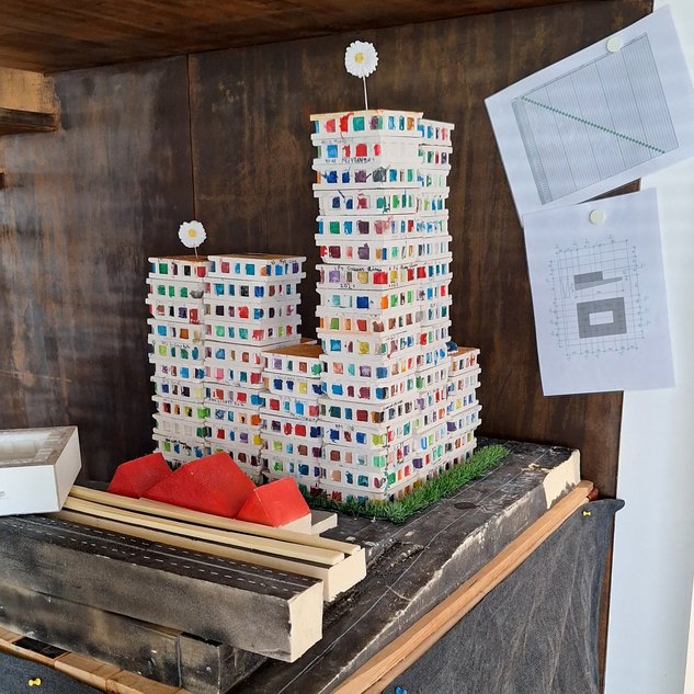 "Det var også ganske mye arbeid å male 1424 vinduer", sier Frédéric. Hvordan klarte de å motivere barna til å holde ut så tappert? "Med en liten godbit", ler han. Da bygningen var ferdig og bare vinduene manglet å males, fikk barna lov til å støpe margaritter av gips som en suvenir. "På betingelse av at de hadde malt minst fire vinduer først." Og vel vitende om at de ikke skulle ta med seg sine egne margeritter hjem, men et annet barns. "Puss må tørke - det er ikke mulig å organisere det på noen annen måte. Men det er bra, for slik er det i byggebransjen: Vi er alle avhengige av andres arbeid, det kreves teamarbeid. Og man må også gjøre en innsats for de andre - og nyte godt av at de har gjort en god jobb."
