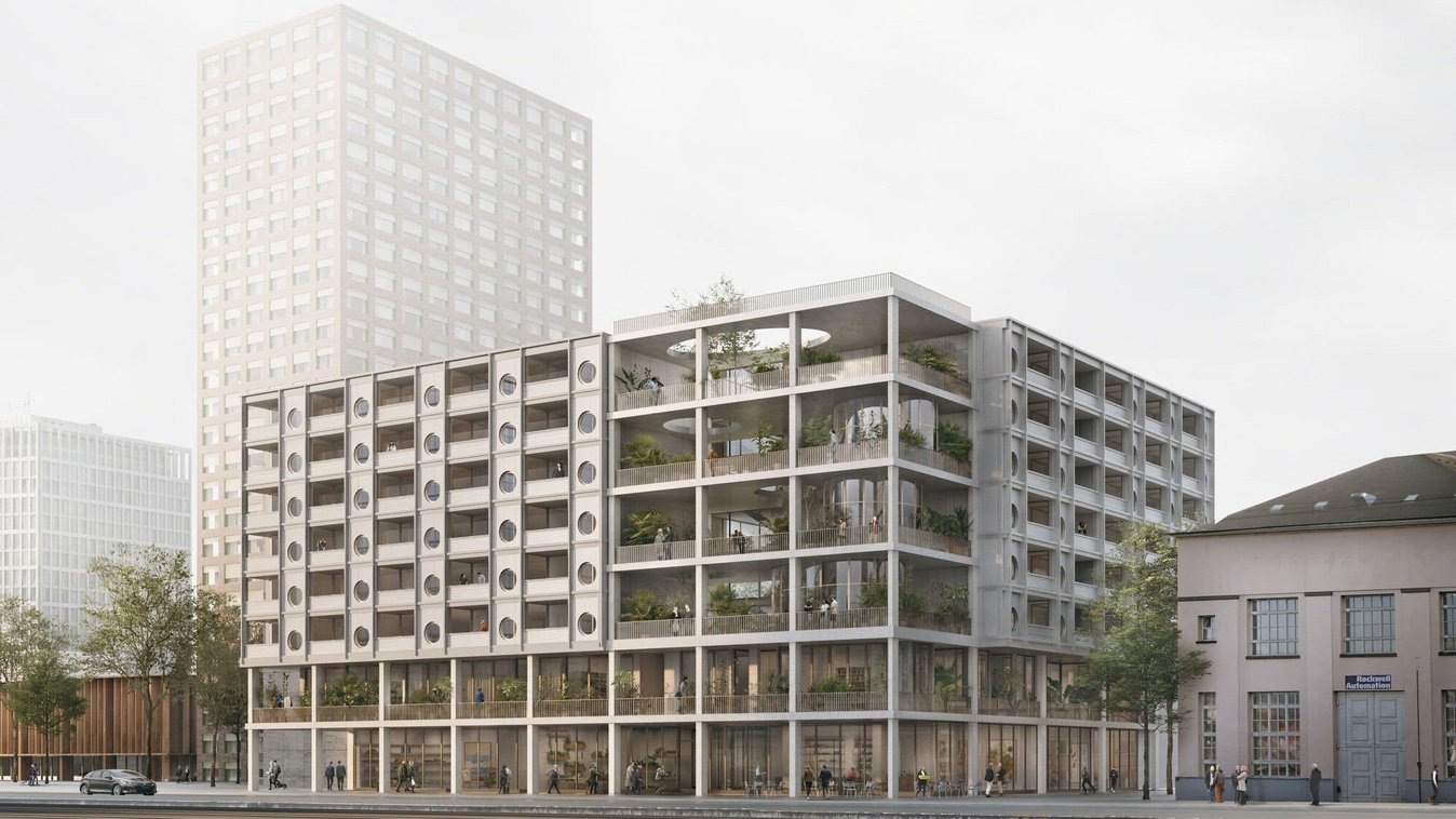 - Das an einen Bestandsturm angebaute mixed-use Gebäude wird vollumfänglich den Standard Minergie-ECO erfüllen, der nebst Energieeffizienz auch Anforderungen an ökologische Nachhaltigkeit, Kreislaufwirtschaft und gesundheitliche Aspekte stellt