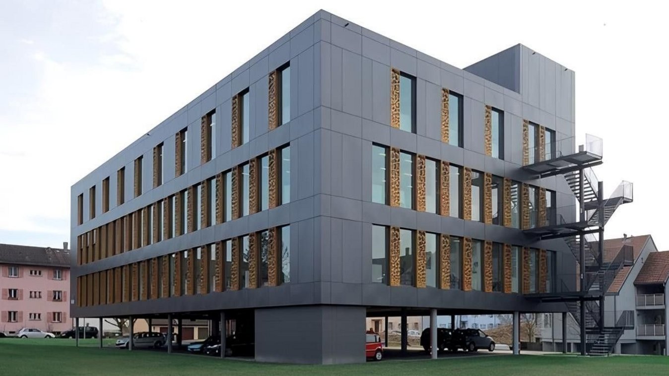 Das Gebäude, das in einer Ecke des Grundstücks errichtet wurde, leitet die geplante Erweiterung des Krankenhauskomplexes ein und hebt sich durch seine schlichten Linien, seine ausgewogene Volumetrie und den originellen Ausdruck seiner Fassaden deutlich von den umliegenden Gebäuden ab. Die Gestaltung der Fassaden ermöglicht es, die beiden erforderlichen Nutzungsarten miteinander zu verbinden und gleichzeitig einen einheitlichen Gesamtausdruck zu bewahren. Die alternierenden Achsabstände von 1,30 m und 0,70 m ermöglichen die gewünschte Flexibilität bei der Gestaltung und eine einfache Anpassung an die Bedürfnisse der Nutzer. Das Gebäude ist vollständig autonom, wobei auf allen Ebenen die Hauptarbeitsflächen in den Randbereichen untergebracht sind, während der zentrale Teil des Gebäudes bevorzugt für Nebenräume genutzt wird. Die notorisch schlechte Qualität des Untergrunds in Yverdon führte zu einem strukturellen Konzept, das auf einem Netz von Gründungspfählen beruht, die die Lasten eines Tragsystems aufnehmen, das in der Höhe mehrheitlich aus Stahlbetonplatten besteht, die auf Pfeilern abgestützt sind. Die Verbände werden hauptsächlich von den vertikalen Zirkulationskäfigen gebildet.