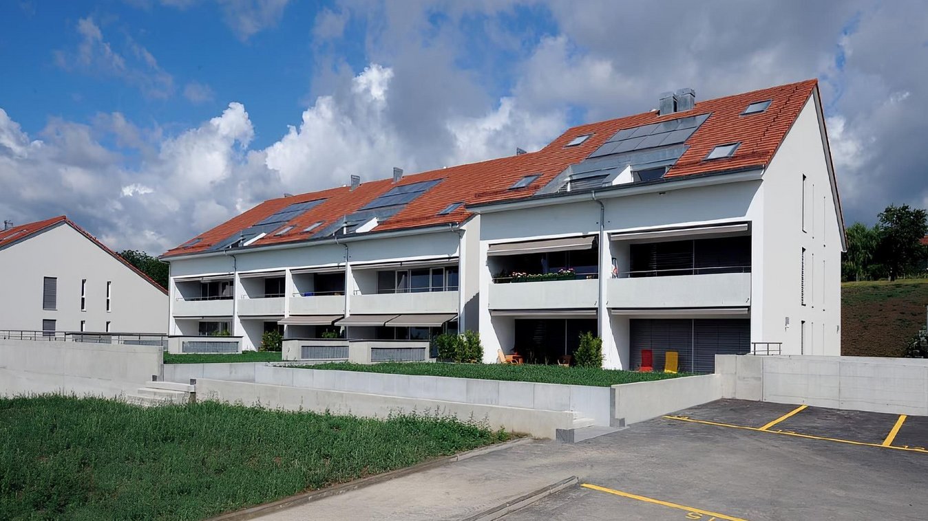 Um die Auswirkungen des Komplexes, der ein SIA-Volumen von 16'800 m3 für 26 Wohnungen darstellt, zu minimieren, unterteilt sich die Residenz in drei verschiedene Volumen, die im Grundriss und in der Höhe versetzt sind. Das Parkhaus, das als halb unterirdischer Sockel und als Terrasse für die Wohnungen im Erdgeschoss fungiert, ermöglicht das Abstellen von 44 Fahrzeugen im Untergeschoss, wodurch die Anzahl der Außenstellplätze auf 23 begrenzt wird. Die 2½-, 3½- und 4½-Zimmer-Wohnungen werden über vier Gebäudeeingänge verteilt. Auf jedem Treppenabsatz des Hauptgebäudes gelangt man zu einer grossen, nach drei Seiten offenen Wohnung und zu einer kleineren, in Nord-Süd-Richtung durchgehenden Wohnung mit zwei Schlafzimmern im Norden, Sanitäranlagen und Küche in der Mitte und einem Wohnzimmer, das sich zu einer Terrasse oder einem grossen Balkon im Süden hin öffnet. Die Wohnungen im zweiten Stock sind Maisonette-Wohnungen, die von einem Badewannenbalkon und einem leicht zugänglichen Zwischengeschoss profitieren.