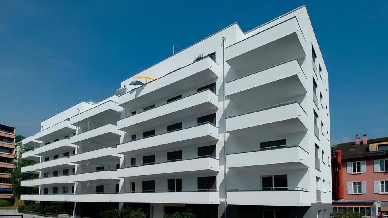 Um der Wohnungsnot an der Riviera entgegenzuwirken, legte der Bauherr ausserdem Wert auf eine Lage mit Seeblick, was bei Mietobjekten immer seltener vorkommt. Da das Grundstück sehr klein und die Umgebung bereits bebaut war, musste der Platz optimal ausgenutzt werden. Daher entschied man sich für den Bau eines sechsstöckigen Gebäudes mit einem Flachdach, das aus einer Betonplatte mit aufgespritzter Isolierung und Abdichtung besteht. Die Tragstruktur besteht aus Beton und Porenbetonziegeln, die breiter als üblich sind und eine ideale Wärme- und Schalldämmung bieten. Die Kombination all dieser Elemente trägt zweifellos dazu bei, dass sich das Gebäude perfekt in seine Umgebung einfügt. Ein weiterer Pluspunkt der Konstruktion: Die gewählten Verglasungen weisen einen überdurchschnittlich hohen Schalldämmungskoeffizienten auf, was den Wohnungen im vorderen Teil des Gebäudes, der auf die Route du Lac blickt, einen nicht zu unterschätzenden Komfort bietet.