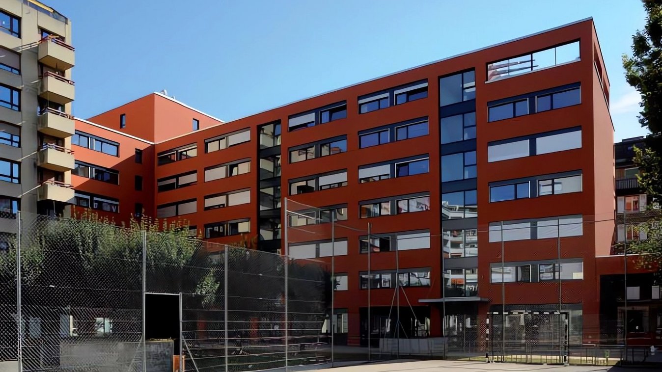 Die Gebäude sind typisch städtisch und fügen sich mühelos in die bebaute Umgebung ein, deren Hauptschablonen sie übernehmen. Die Fassaden sind weitgehend durchbrochen, bestehen zum Teil aus vorgefertigten Elementen und zeichnen sich durch eine originelle und warme ziegelrote Farbe aus, die durch vertikale und horizontale Einschnitte ergänzt wird. Im Inneren bieten die Wohnungen Wohnräume und Küchen, die einen einzigen grossen Gemeinschaftsbereich bilden, der sich nach Süden durch grosse Glasfenster zu den Balkonen hin öffnet. Zwei der drei vertikalen Verteilerschächte bieten Zugang zu zwei Wohnungen pro Stockwerk. Der dritte Schacht, der sich innerhalb der Ecke des Gebäudes befindet, verteilt standardmässig vier Wohnungen pro Etage. Der Komplex bietet einen hohen Nutzungskomfort und ermöglicht auch eine optimale Nutzung der Gemeinschaftsräume zugunsten der Wohnungen. Die Wohnungen sind gut dimensioniert und bieten den Vorteil der doppelten Ausrichtung, die in diesem Fall und darüber hinaus eine günstige Verteilung der Lärmemissionen der Stadt ermöglicht.