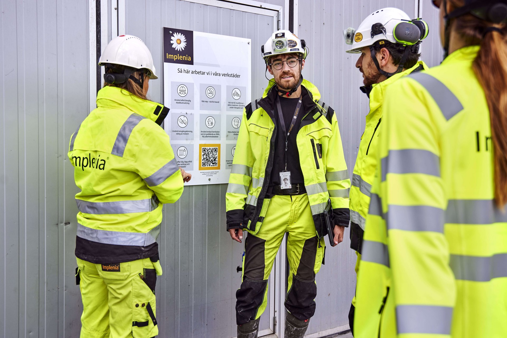 Hälsa och säkerhet är företagets högsta prioritet och Implenia Sverige är fast besluten att förebygga olyckor och arbetsrelaterad ohälsa. Vi har nollvision för olyckor på våra arbetsplatser. Målet är att alla medarbetare ska ta hand om varandra, säkerställa varandras säkerhet och känna sig respekterade, trygga och delaktiga, vi är varandras arbetsmiljö.