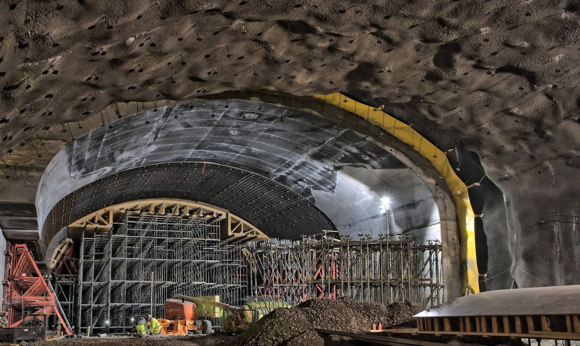 Vår byggprocess är materialintensiv, vilket kräver effektiv resursanvändning för att minska energiförbrukning och utsläpp av klimatgaser. Vi arbetar för att optimera konstruktioner och anpassar arbetssätt tidigt i projektet. Genom god planering och anpassade inköp kan vi minimera mängden spillmaterial. Överblivet material återanvänds eller säljs tillbaka till leverantör. Vi prioriterar leverantörer med låg klimat- och energibelastning i produktionsprocessen och använder, om möjligt, återvunnet material i våra projekt. Under 2024 sprängdes cirka 362 454 m³ bergmaterial ut från våra tunnelprojekt, och de största materialvolymerna som hanterades var betong, asfalt och armering utöver berg-, kross- och fyllnadsmaterial.