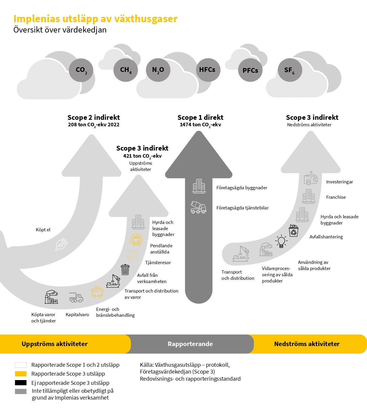 | Scope 3 | Andra indirekta utsläpp, till exempel utvinning och produktion av inköpt material och bränsle, transport med fordon som inte drivs av det rapporterade företaget, tjänsteresor m.m. |