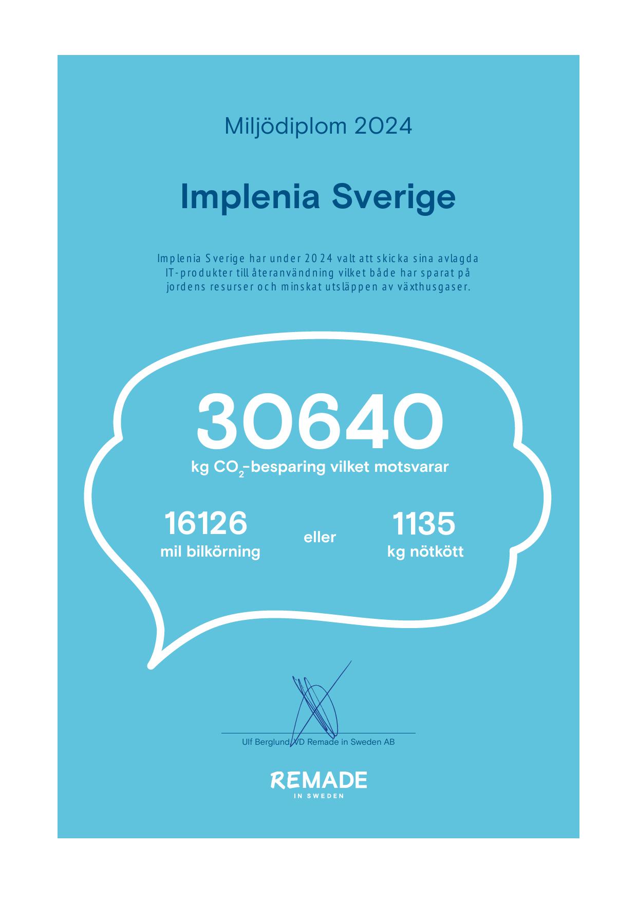 Återanvändningen av vår IT-utrustning resulterade i en besparing på hela 30 640 kilo koldioxid. Detta motsvarar 16 126 mil med en diesel- eller bensinbil. ⭐