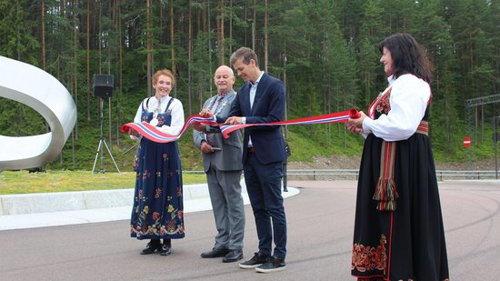 Med korpsmusikk og publikum tilstede, klippet samferdselsminister Knut Arild Hareide sammen med...