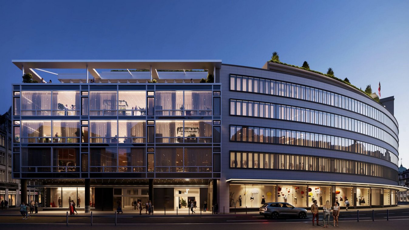 Das traditionsreiche Gebäude in der Zürcher Innenstadt wird ab Anfang 2025 während zwei Jahren umgebaut. Danach werden in den unteren Geschossen neu gestaltete, hochwertige Retailflächen mit rund 13 000 m² zur Verfügung stehen, darüber Büro- und Dienstleistungsflächen mit rund 20 000 m².