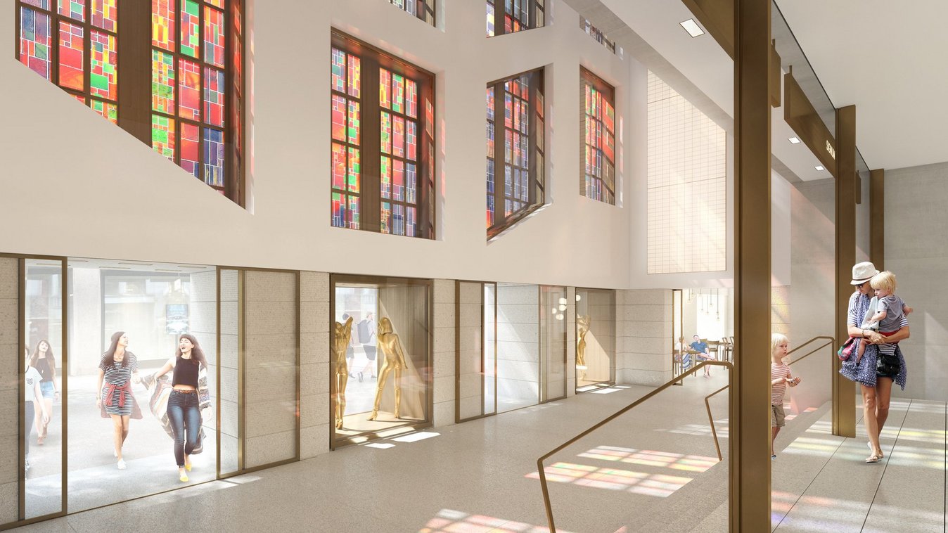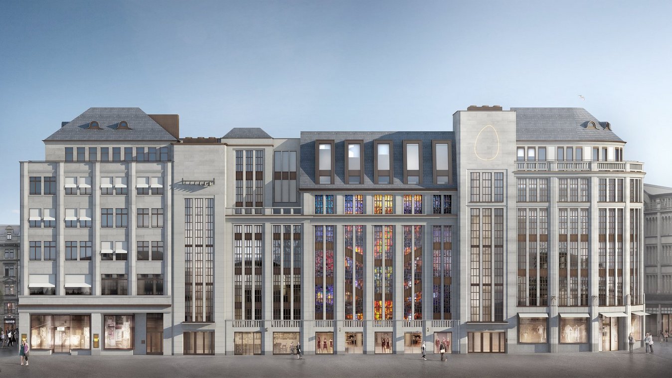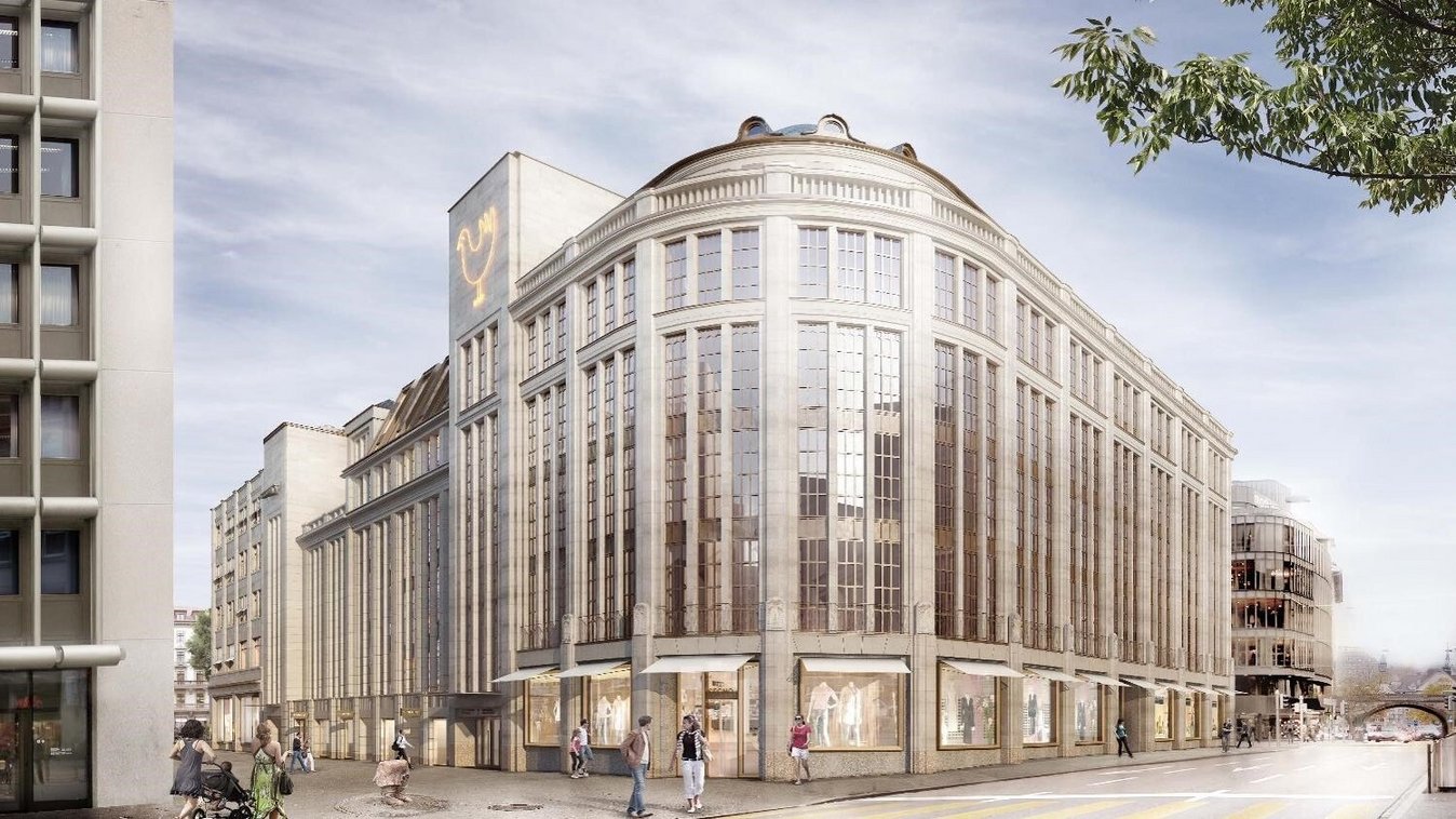 Nach langjähriger Nutzung durch ein Warenhaus wird das Projekt zur Umnutzung sowohl als Retail- als auch als Bürogebäude tiefgreifend umgestaltet. So werden im Haus 75 zwei neue Untergeschosse geschaffen sowie ein neuer Innenhof ab 2. OG erstellt.